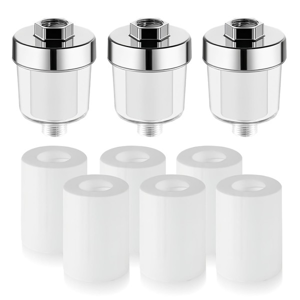 Pack of 3 Water Filter Shower Filter Universal Shower Filter Shower Head with 6 Interchangeable Filter Elements Effective in Filtering Water Contamination for Bathroom