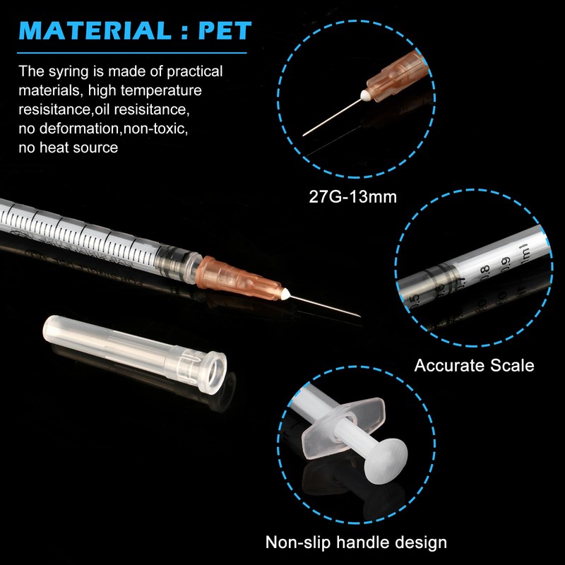 - High-quality materials: 1 ml plastic syringe made of high-quality polypropylene. Individually sealed, clean, safe; the syringe scale is clear and accurate.