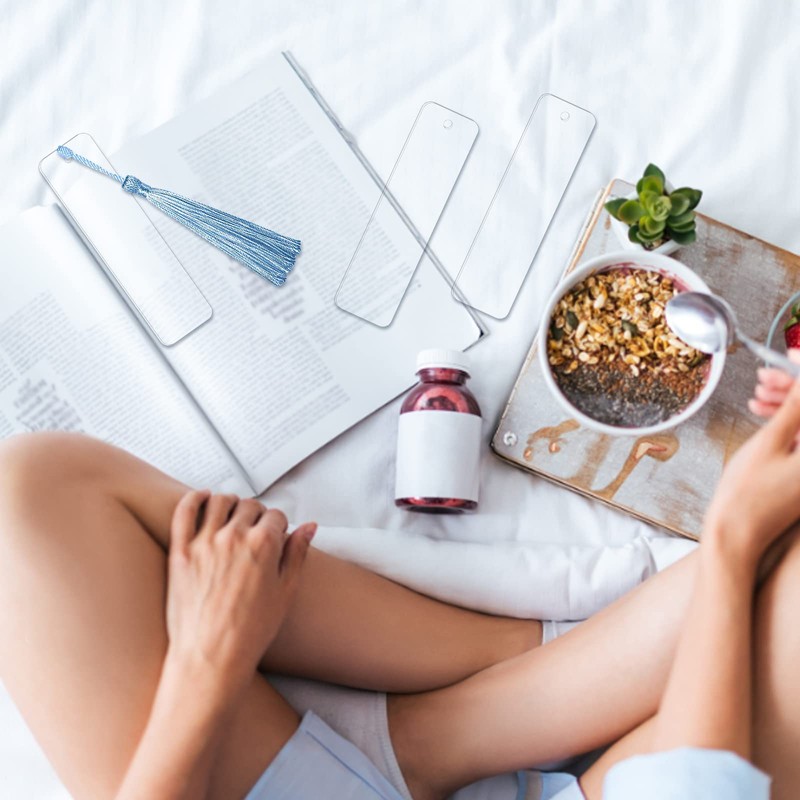 Pack of 30 Blank Bookmarks Set, 12 x 3.2 cm Rectangular Acrylic Bookmarks with 30 Colourful Tassels Transparent Bookmarks for DIY Projects Notebook Christmas Gifts