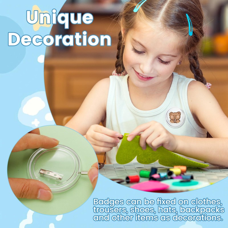- DIY design: these button makers DIY acrylic are highly transparent and display pictures clearly. You can design the template according to your wishes to make the acrylic button badges more colourful and show your personal style.