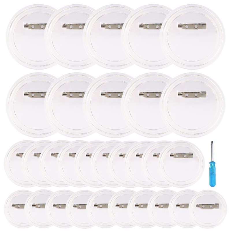 Pack of 30 Buttons Make Yourself Without Button Machine, 38/45/59 mm Buttons Make Yourself, Buttons to Design Yourself, Acrylic Design Button Badge, Transparent Button to Design Yourself