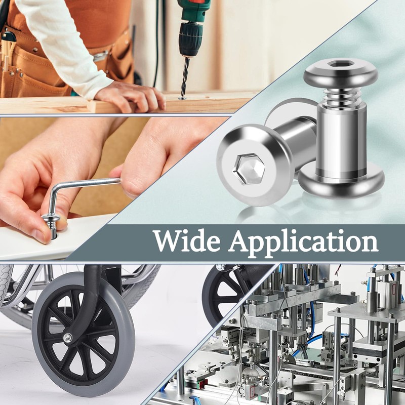 Wide applications: these sleeve screws are suitable for various application scenarios, for attaching furniture such as beds, tables, chairs and cupboards. It can also be used for mounting electronic devices and machine components.