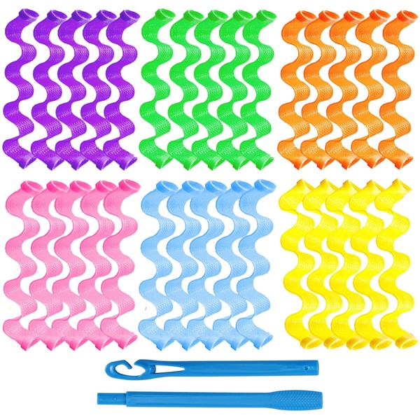 Pack of 30 Curlers for Long Hair, Hair Curlers Spiral Curls Styling Kit, Spiral Curls Waves Without Heat Curlers, with 2 Styling Hooks for All Hair Lengths, 30 cm