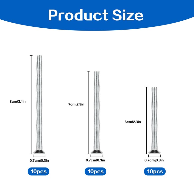 - The package includes: a total of 30 pieces machine screws, including 10 pieces M5 x 60 mm, 10 pieces M5 x 70 mm, 10 pieces M5 x 80 mm, which meet the requirements of multiple scenarios and areas.