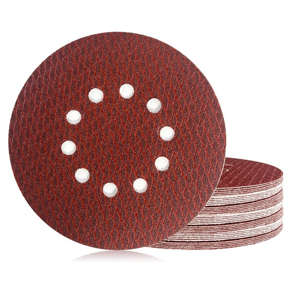 Pack of 30 Sandpaper 225 mm Velcro, Eccentric Red Sanding Discs 240 Grit, 10 Hole Anti-Clog Up Design for Random Orbital Sander and Orbital Sander