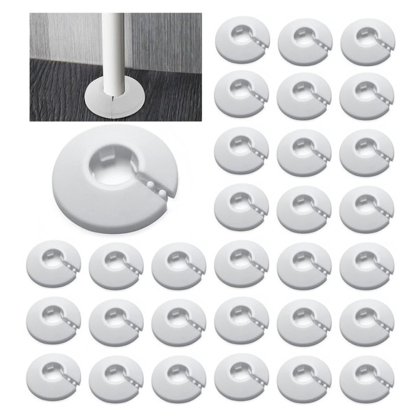 Pack of 30 Single Heating Pipe Rosette, Heating Pipe Cover, Cover Rosettes, Heating, Trim, Radiator Rosettes, White Polypropylene, White (16 mm)