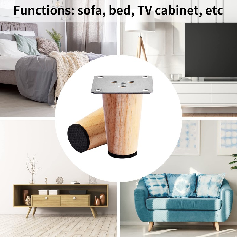 - 【Value Package】: Packed with 4 wooden couch legs, 4 mounting plates, 28 screws, 4 felt anti-slip pads; The protective pads ensure that your floors do not leave scratches, they can move the furniture silently and protect the floor.