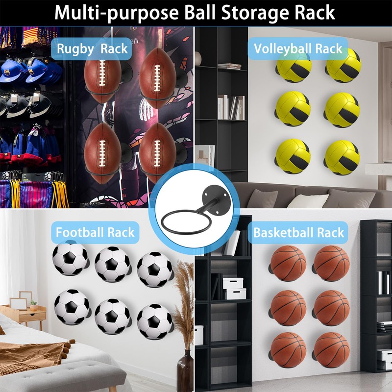 - Rich set: the package contains 4 wall-mounted ball brackets, 1 pack of inflatable kits, 16 metal screws with 16 dowels. The diameter of the ball stand measures 10 cm, which is suitable for most sports balls, such as basketball, football, rugby, volleyball, etc.