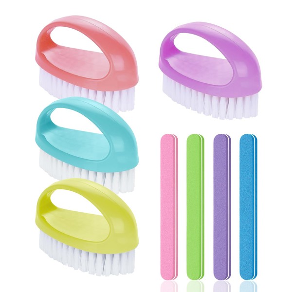 - Product contents: you will receive 4 brushes and 4 nail files. The brush size is egg-shaped and the colours are green, purple, pink and blue; the nail file size is 177 mm x 19 mm and the colours are green, pink, blue and purple, suitable for nail cleaning and care.