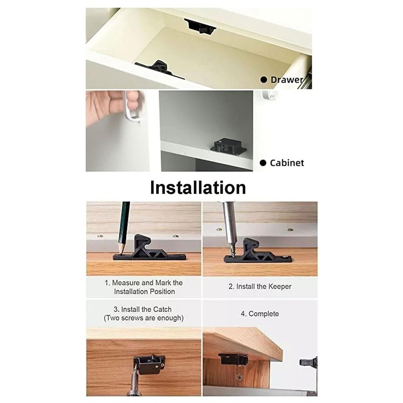 • Package: you will receive 4 x cabinet door locks. Please mark the place where the screw needs to be drilled before installing the RV cabinet locks, then align the latch and keep it so that they work well.