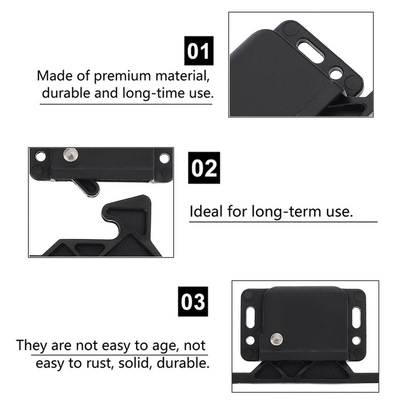 • Innovative design: this cabinet door lock caravan features a unique automatic push-open design and offers you an unparalleled comfort experience. No cumbersome operations are required. Simply press it lightly and the cabinet door lock caravan opens automatically, saving you time and energy. Make it easier to use.