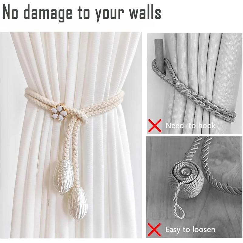 Pack of 4 Curtain Tiebacks, Curtain Rope Buckles, Curtain Holdbacks for Curtains, Curtain Rope Buckle, Tiebacks for Curtains, Hand Knitted Cotton Curtains Tiebacks, Curtain Holdbacks