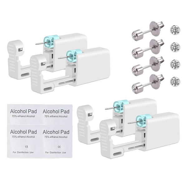 - Includes accessories: the tool set for disposable ear piercing guns contains 4 packs. Each set includes a self-destructive ear piercing gun, a built-in earring stud and alcohol wipes for disinfection. This set is ideal for piercing accessories and piercing kits.