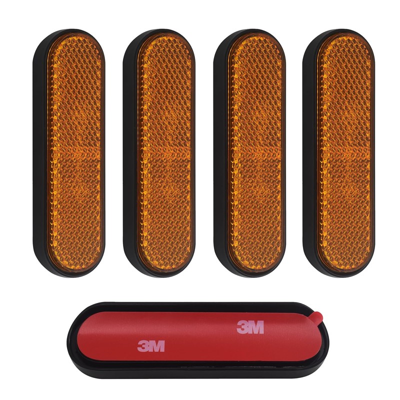 Pack of 4 Fork Reflector, Yellow Rectangular Reflector, Yellow Rectangular Reflector, Orange Cat's Eye, Bicycle Reflectors Front Rear for Motorcycle Bicycle Multifunctional Scooter E4 Rounded