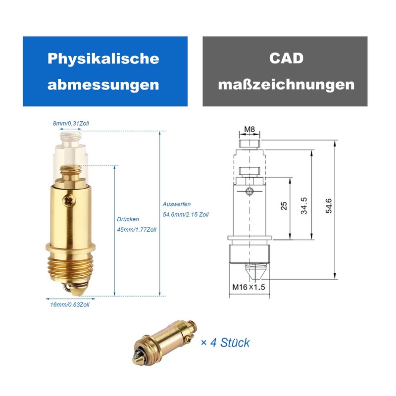 - [4 Pack]:Includes 4 drain valve screw plugs with 8mm screws at the top and 16mm screws at the bottom that fit into M8 threaded plugs. Suitable for most sinks, bathtubs, sinks, drain plugs and as a replacement part for sink hinge drain valves.