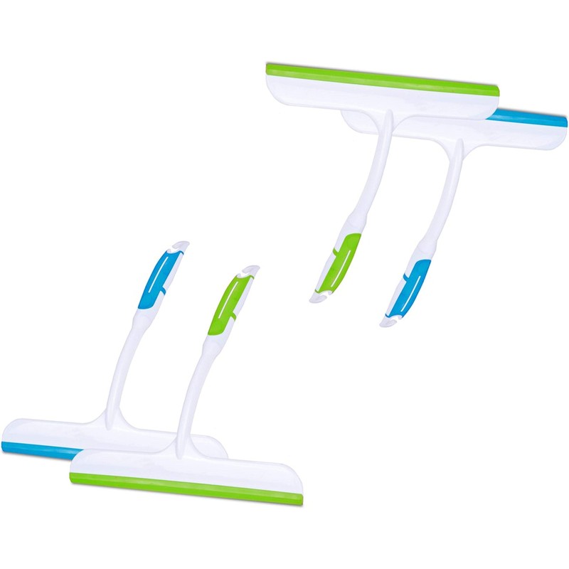 Pack of 4 practical squeegees with soft grip for glass/shower screens/floor and much more.