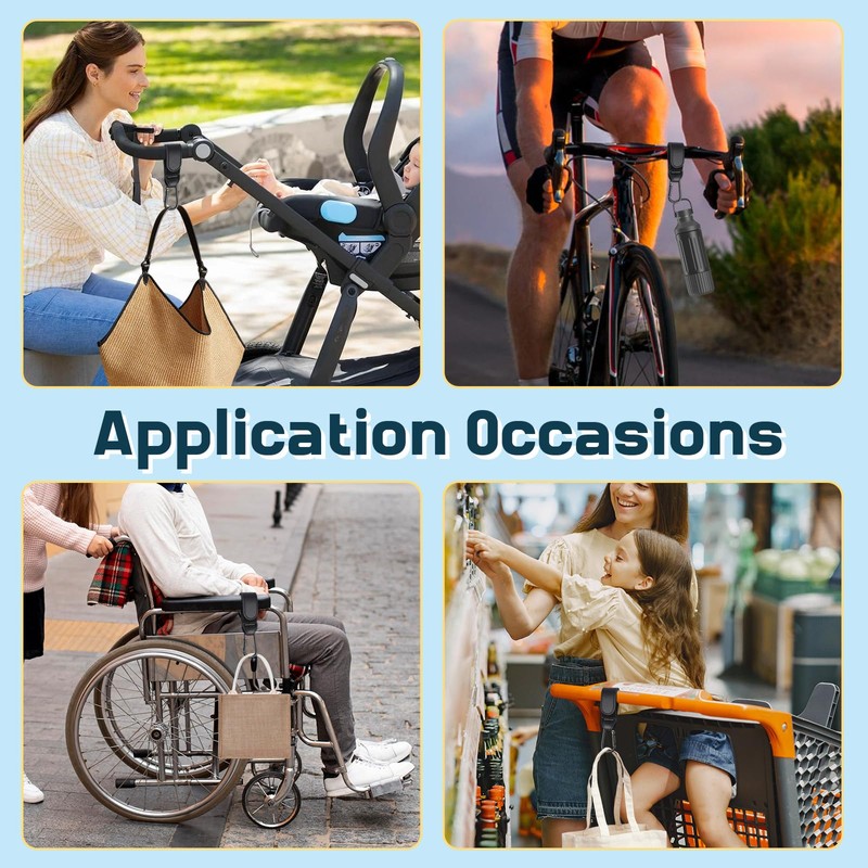 - Wide range of applications: the pram bag holder is not only suitable for pushchairs, but also for suitcases, bicycles, wheelchairs, shopping trolleys and more. You can easily hang handbags, backpacks, shopping bags, changing mats and more on the pram bag holder.
