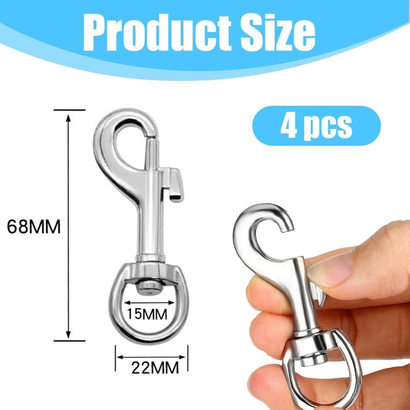 Pack of 4 Robust Carabiner Hooks, Dog Lead, Silver Swivel Carabiner Hook, Bolt Carabiner for Dog Lead, Buckle, Swivel Carabiner Hook, Snap Carabiner Swivel Head for Dog Lead