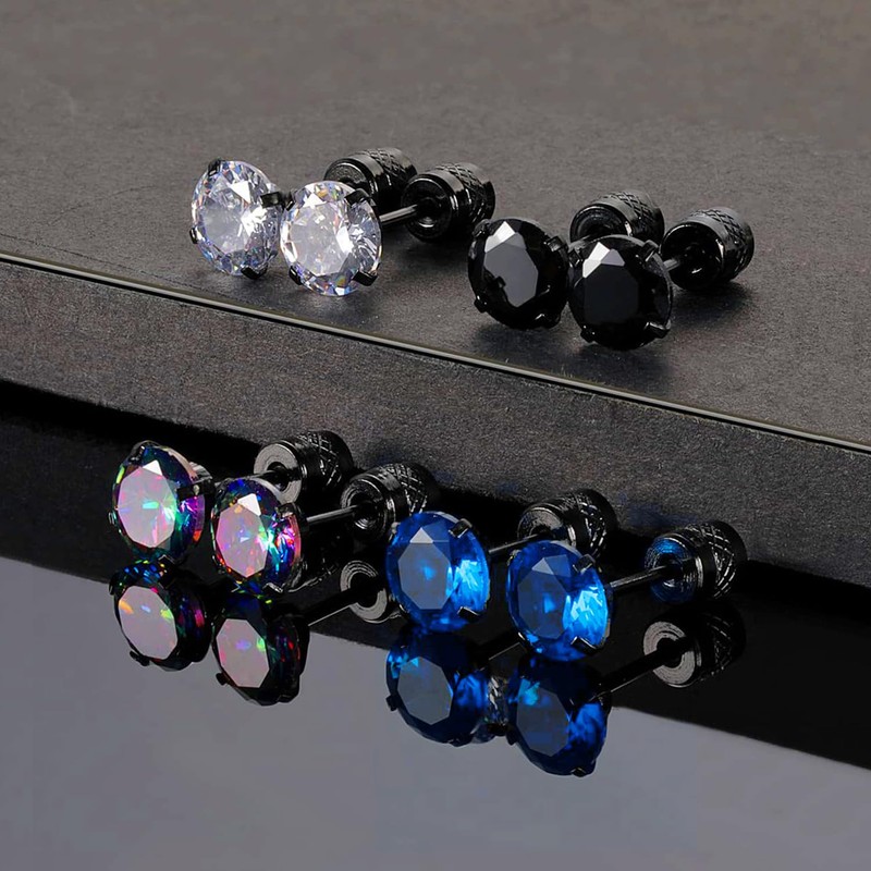 • Pack of 4 Earrings Rainbow CZ Studs--6mm, Double Sided Earrings for women, men