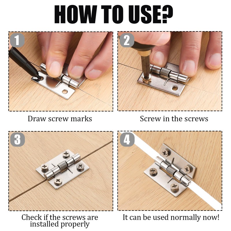 - Convenient Automatic Closing Function These small door hinges are equipped with an automatic closing mechanism and meet your requirements effectively, making them good for cabinets and jewelry boxes.