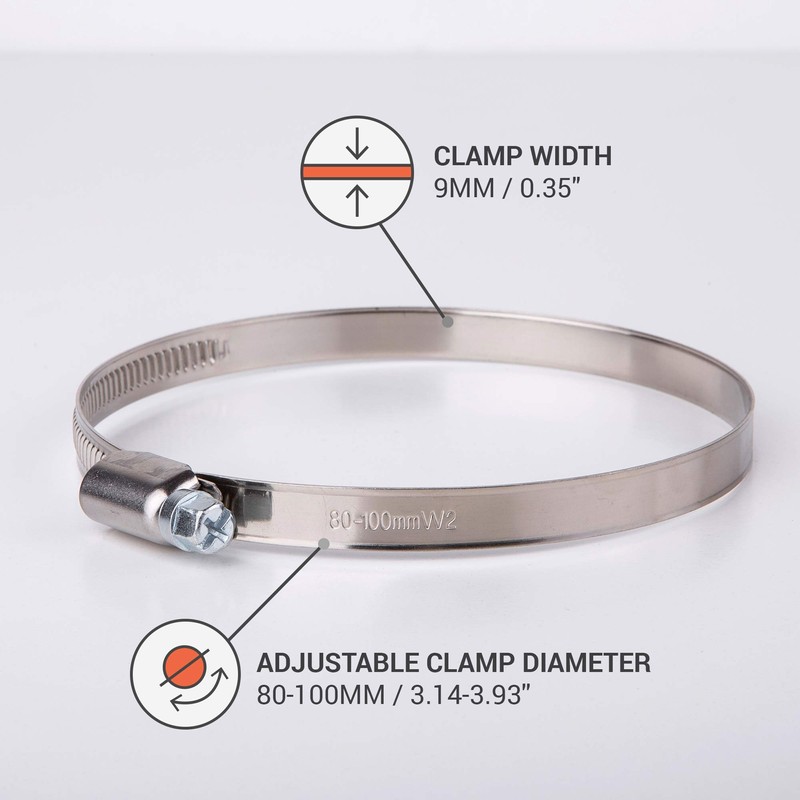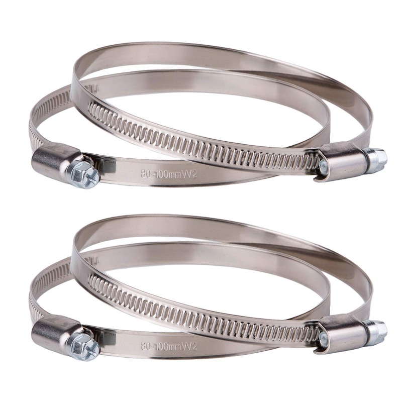 Pack of 4 Stainless Steel Hose Clamps, Adjustable Clamps, Worm Gear, Adjustable, Diameter 80-100 mm, Hose Clamp (4)
