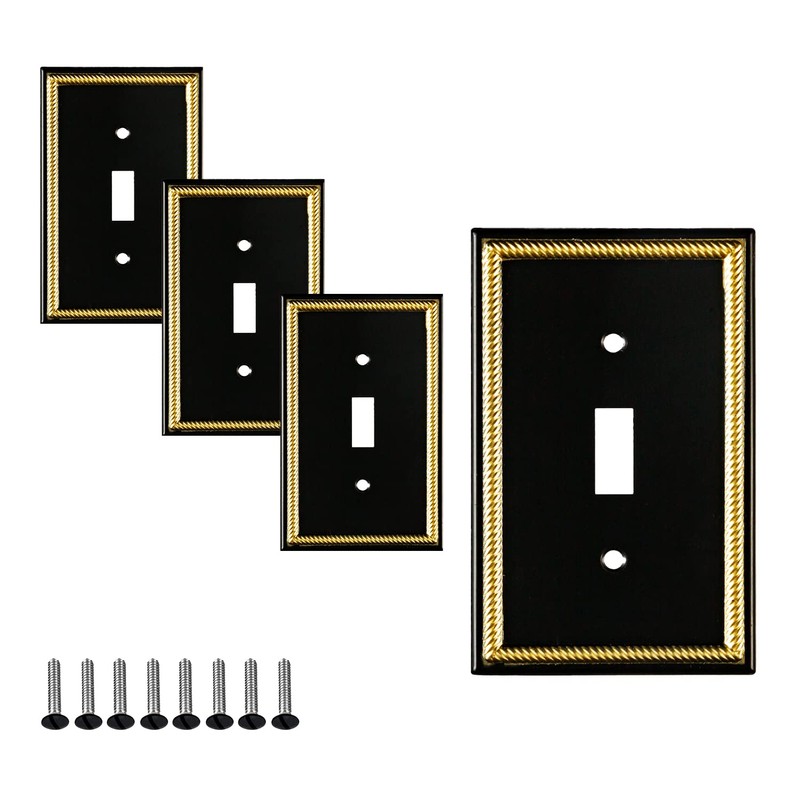 Pack of 4 Wall Plate Outlet Switch Covers by SleekLighting | Decorative Zinc Cast Black and Gold| Variety of Styles: Rocker/Receptacle/Toggle / & Combo | Size: 1 Toggle