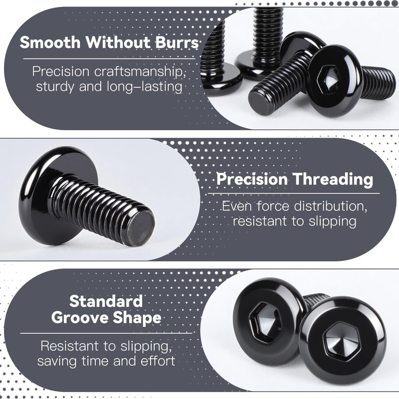 - Precision thread: the M5 black screws have sharp-cut, precise threads that ensure a stable connection and minimise the risk of loosening or slipping. This precise thread cutting technique significantly improves handling and assembly efficiency. The clean and precise threads allow easy and quick installation, especially for projects that require high precision.