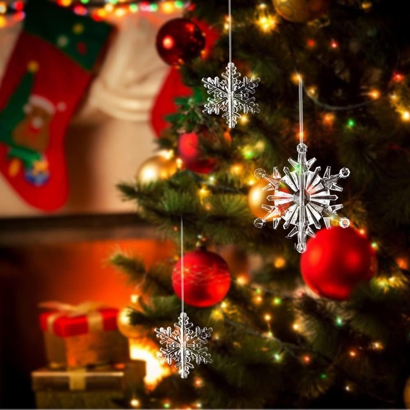 Pack of 45 Clear Snowflakes Crystal Ornaments Christmas Tree Pendant Acrylic Snowflakes with a 15 m Long Transparent Line Christmas Decoration DIY 3 Styles Diameter 42 mm Diameter 52 mm Diameter 72 mm