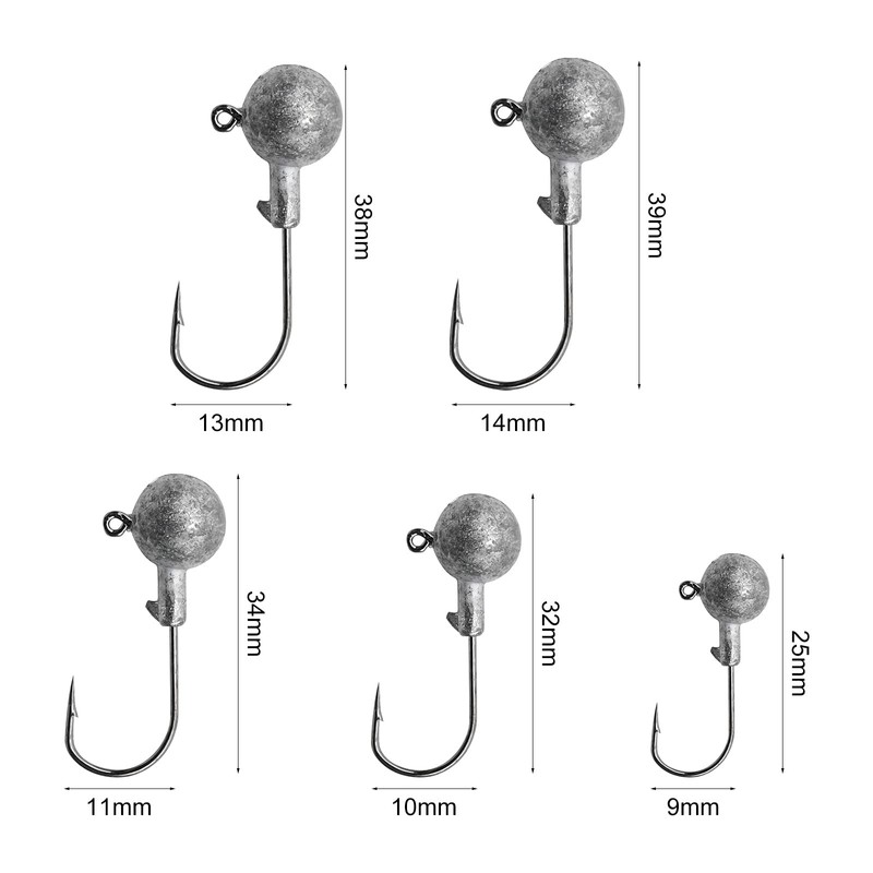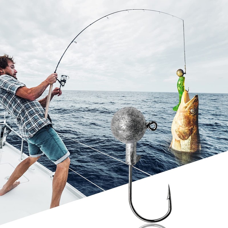 The lead head on the top increases the weight and allows the hook to sink quickly in the water. The ball falls to the ground with the pointed hook upwards, which makes it easier for the fish to pick up the bait.
