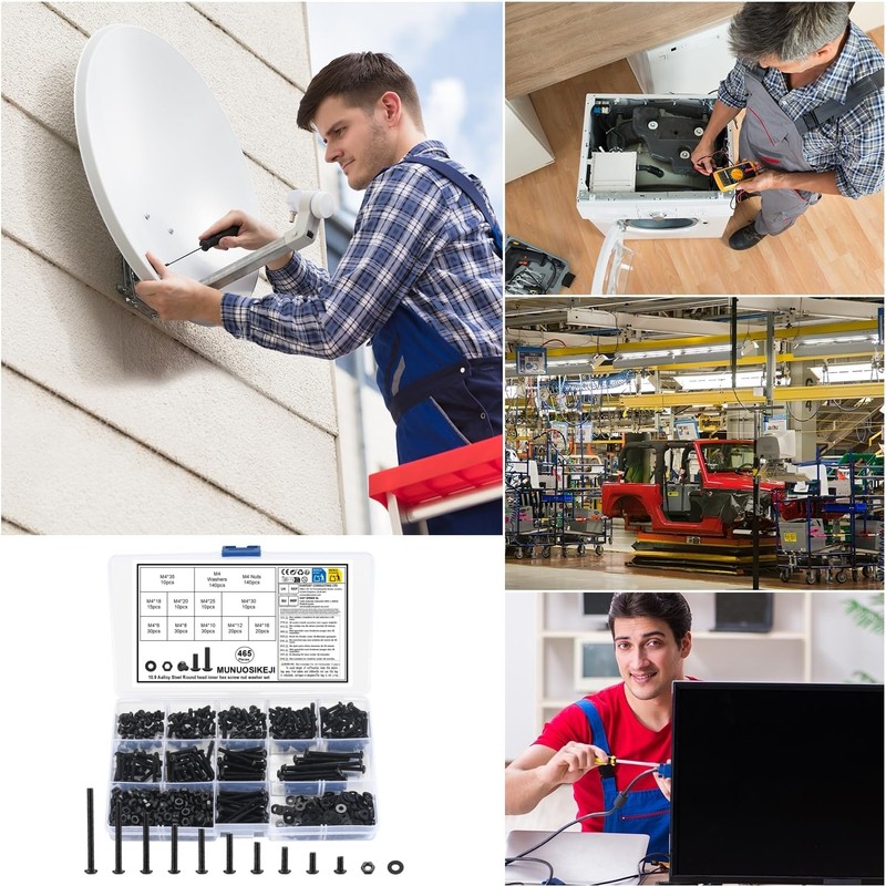 - PACKAGE INCLUDES Total 465 pieces, size and quantity include: 30pcs M4 x 6mm, 30pcs M4 x 8mm, 30pcs M4 x 10mm, 20pcs M4 x 12mm, 20pcs M4 x 16mm, 15pcs M4 x 18mm, 10pcs M4 x 20mm, 10 pieces pieces pieces M4 x 20 mm, 10 pieces M4 x 25 mm, 10 pieces M4 x 30 mm, 10 pieces M4 x 35 mm, 140 pieces M4 washers, 140 pieces M4 nuts, sufficient quantity, large size to meet the usage requirements of different scenes and regions.