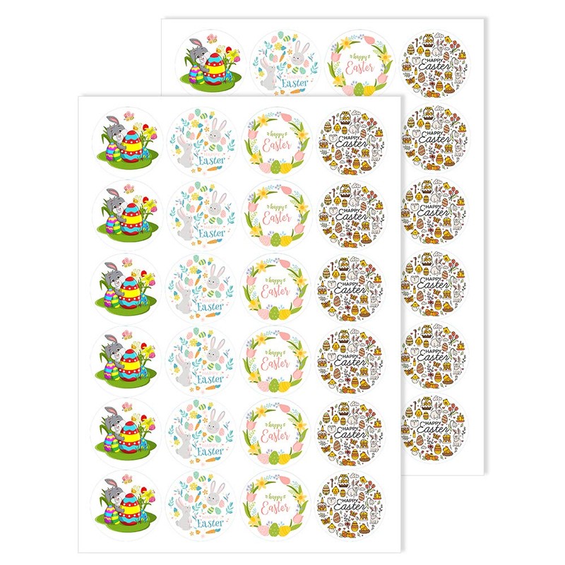 - Round easter stickers self adhesive circle decorating stickers for easter day celebration of size 40 mm.