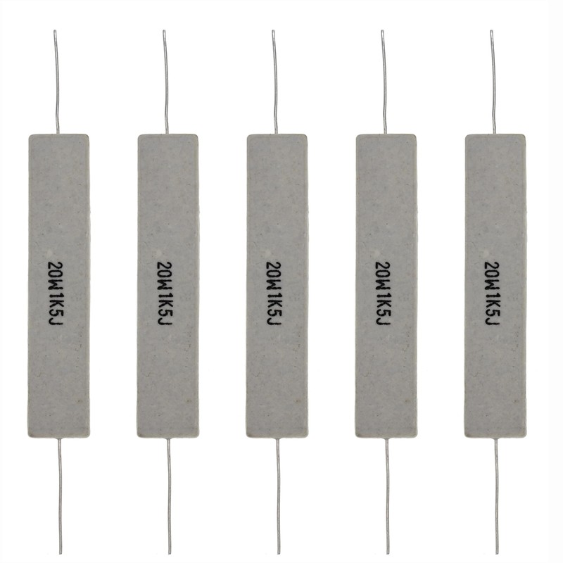 (Pack of 5) 20W 1.5K Ohm 5% Power Wirewound Ceramic Horizontal Cement Resistor