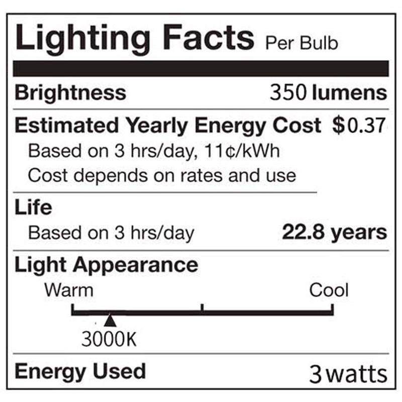 5 pack E12 LED light bulbs, 3W(30W 35W 20W Halogen Equivalent) warm white 3000k, 350 lumen.