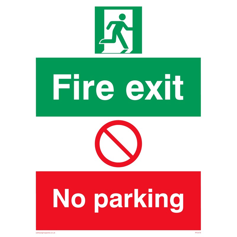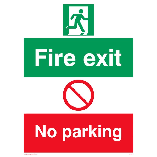 - Sign text: Fire Exit No Parking