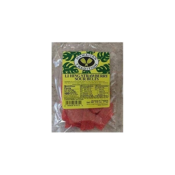 (Pack of 5) Hawaiian Tradition Li Hing Strawberry Sour Belts 2.5 Oz. Bag