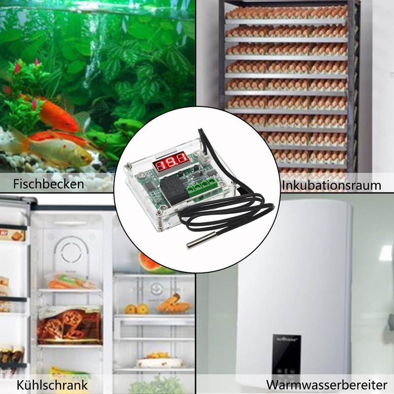- Waterproof probe: W1209 LED digital thermostat controller. The included NTC probe is waterproof and allows temperature control of liquids. for controlled heating or cooling.