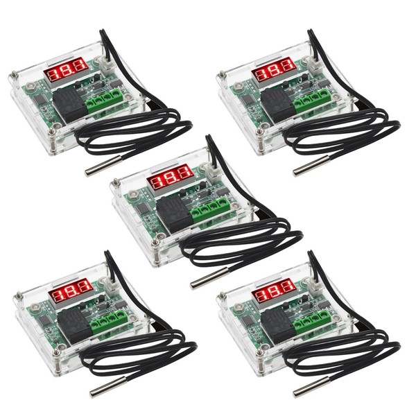 Pack of 5 LED Digital Thermostat, 12 V W1209, Temperature Controller Module with Housing, Digital Thermostat Module with Waterproof Sensor Probe Heating/Cooling