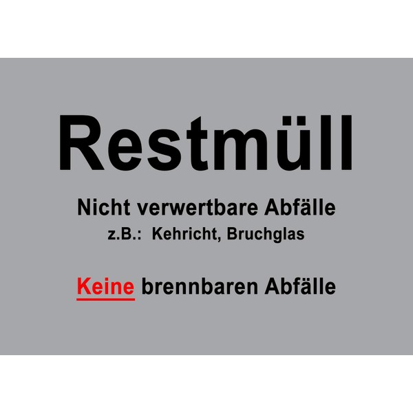 • 5 x residual waste/black bin stickers, 14.8 x 10.5 cm, pre-cut with slotted back