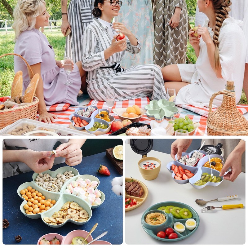 - Sturdy design: snack plate with compartments has an attractive, flower-shaped design and can be stacked to save space. The smooth edges fit comfortably in the hand and are easy to transport. The thick, non-slip base ensures a stable stand.