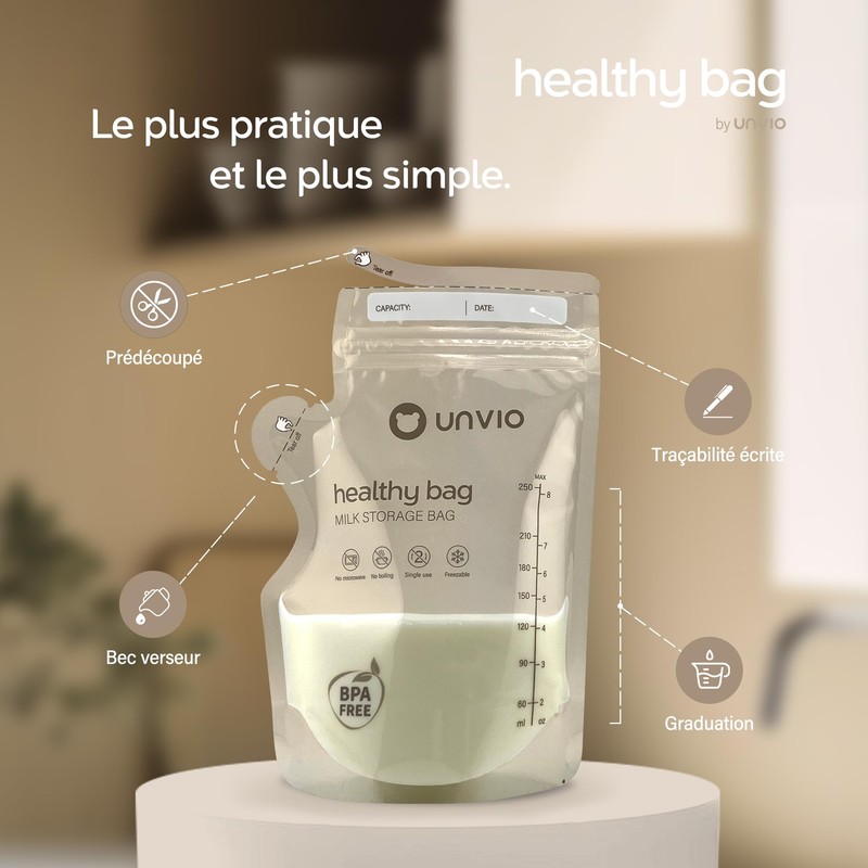 - 【Healthy Milk Without Contamination】Our breast milk storage bags ensure perfect hygiene and preservation without risk of contamination thanks to a separate milk inlet and outlet system. Completely leak-proof, they allow a clean and traceable breast milk collection thanks to a writing area allowing to write the date and quantity of milk drawn.