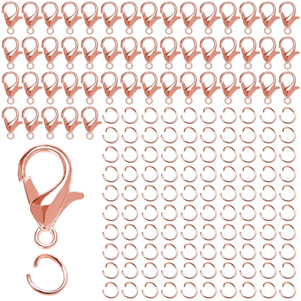 - ✔Package includes: you will receive 50 pieces lobster clasps and 100 pieces split rings. The size of the lobster clasps is approx. 12 x 6 mm and the outer diameter of the split rings is approx. 5mm Rose Gold There are enough of them to make a variety of beautiful bracelets or necklaces.
