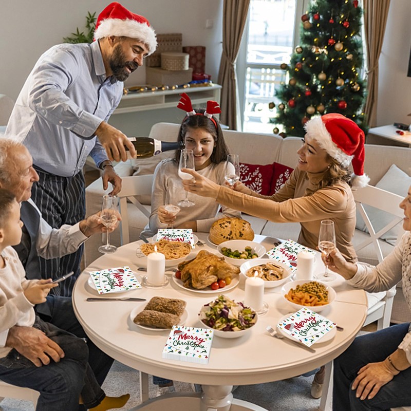 - Christmas napkins for the perfect Christmas party: Christmas napkins are colourful and exude a festive Christmas atmosphere. They are decorated with cute "merry christmas" prints and pretty colourful fairy lights motifs that offer you a unique festive atmosphere.