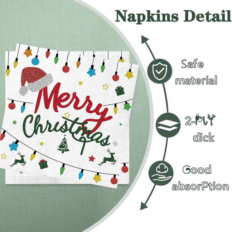 - PREMIUM QUALITY SIZE Our napkins are 2 ply and measure 13 inches in length, 6.5 inches in width, and 1.5 inches in height. Disposable napkins make your Christmas party more convenient.
