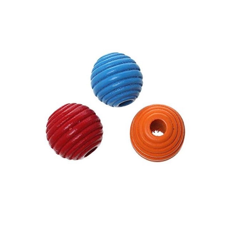 Pack of 50 Maple Wooden Beads 19 x 20 mm with 6 mm Hole Round Grooved Pattern Colourful for Crafts Threading Balls Beads Made of Wood Craft Beads for DIY Jewellery Making Bracelets Chains