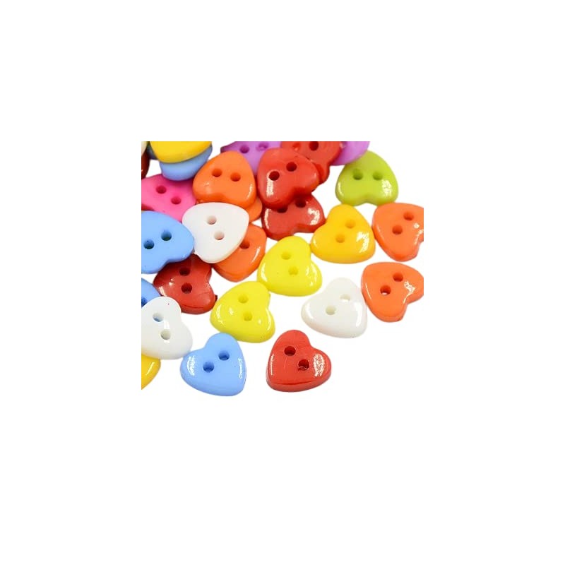 Pack of 50+ Mixed Acrylic 12mm Heart Buttons