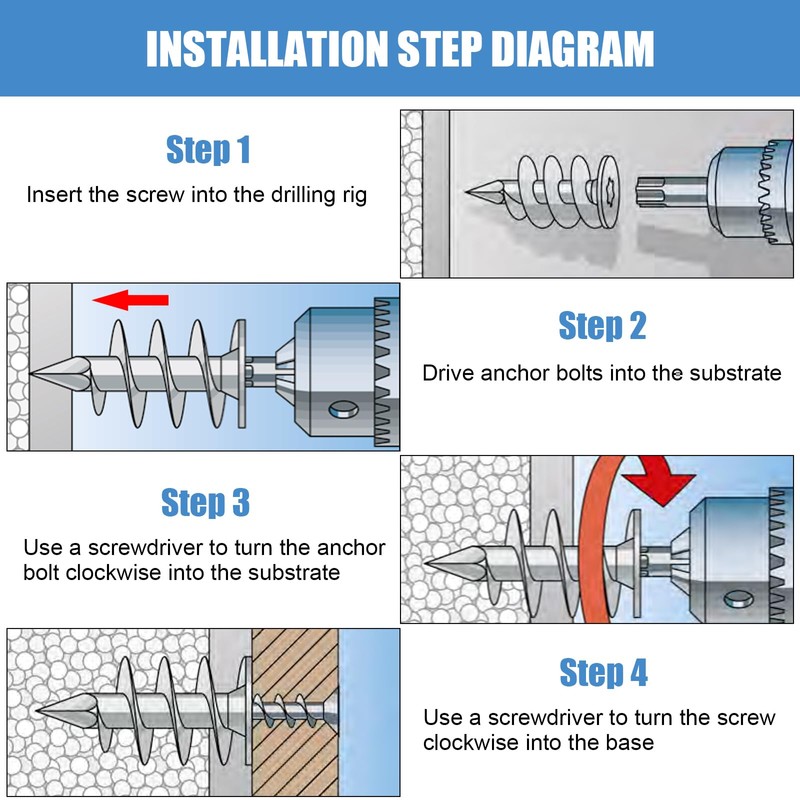 - 【Without pre-drilling】: first drill a hole with the same diameter as the drywall anchor with a screwdriver and insert the drywall anchor into the hole. Insert the screws and tighten the mounting screws.