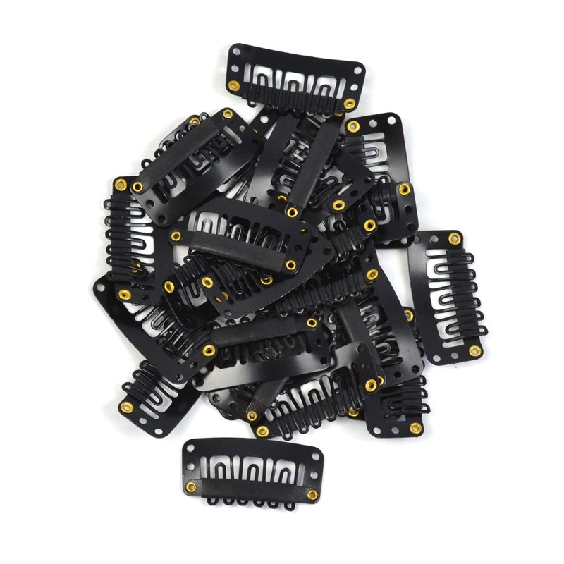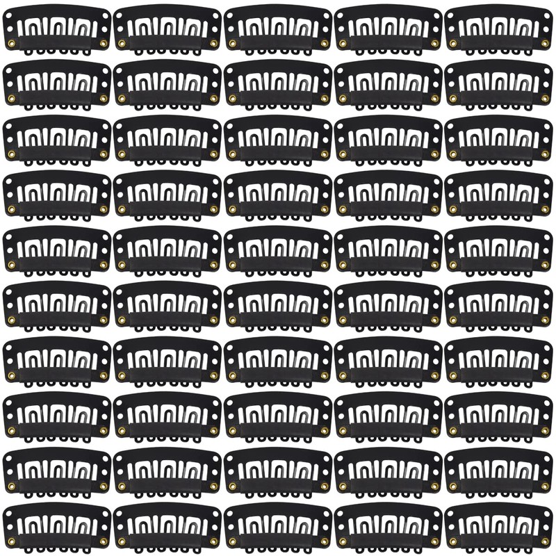 Pack of 50 Wig Clips, U-Shape Metal Snap Clips, 32 mm, 6-Tooth Combs Clips with Rubber for Hair Extensions, Hairpieces (Black)