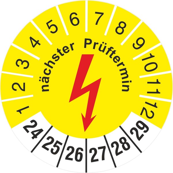The test badges for the next electrical test are ideal for documenting maintenance and test intervals on devices and reminding you of the next inspection due. Regular checks should be carried out not only for legal reasons, but also for absolute safety.