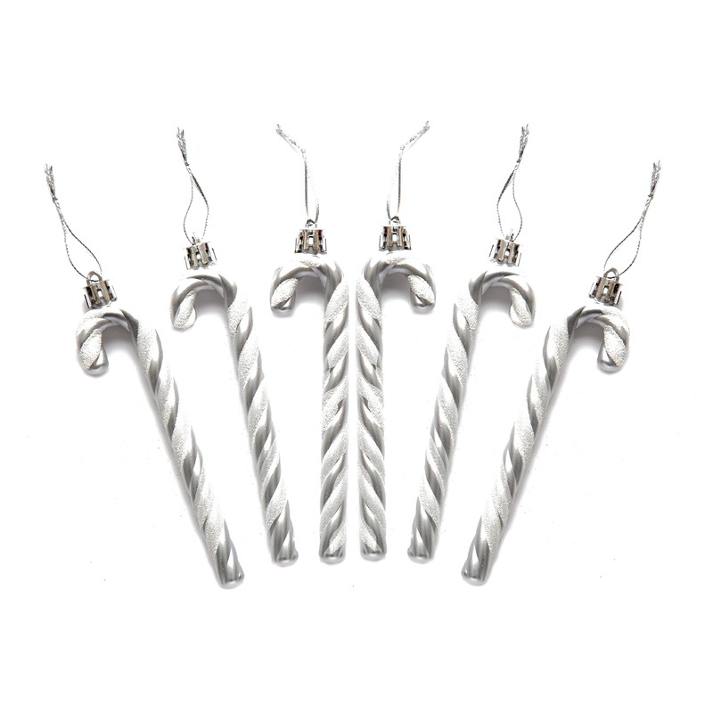 Pack of 6-13CM Glitter Candy Cane –Christmas Tree Hanging Decoration Bauble Xmas Ornament (Silver)