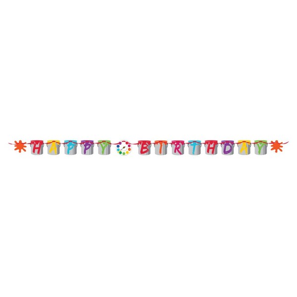The products in the Wholesale Department are offered in Case ONLY. The Case ONLY price is at a BIG bulk discount. Art Party Birthday Ribbon Banner CASE (6 Banner) Each package contains 1 ribbon banner Paint can shaped pennant flags that spell out happy birthday on a stringer of ribbon. 6 packs of 1 banner Banner measures 6in x 7ft Item 317729